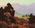 The Wachtels traveled around Southern California in a specially built motor car designed to accommodate their artistic needs. Wachtel was especially skilled in other materials such as woods and metals. He designed, built, and carved much of their furniture. In 1908, the Wachtels traveled to Arizona and New Mexico working in Moki and Navajo reservations. They continued painting and exhibiting together until his sudden death on August 21, 1929 in Guadalajara, Mexico while on a sketching trip. Wachtel’s early works were landscapes done in moody, dark tones similar to the Tonalist-Barbizon aesthetic common in San Francisco painters; whereas his later palette lightened and his works became more decorative. He is today considered to be one of Southern California’s most important painters.