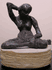 Green Patina Seated Nude, Arms Up, with Hand-carved Sandstone Base